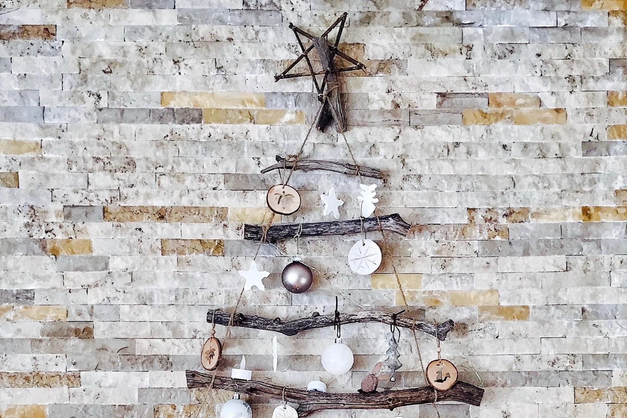Los muros son aliados perfectos a la hora de decorar y ¡en este caso también! Porque si tienes poco espacio son la solución perfecta. Puedes instalar un arbolito de lo más entretenido con luces led o con distintos materiales como cuerdas, palitos de madera o incluso adornos navideños, dándole la forma de árbol de pascua. Sólo debes echar a volar tu imaginación..